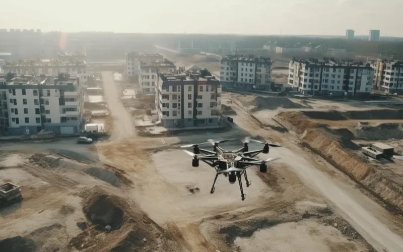 Drones track progress and analyze the site in real time, boosting project delivery and management.